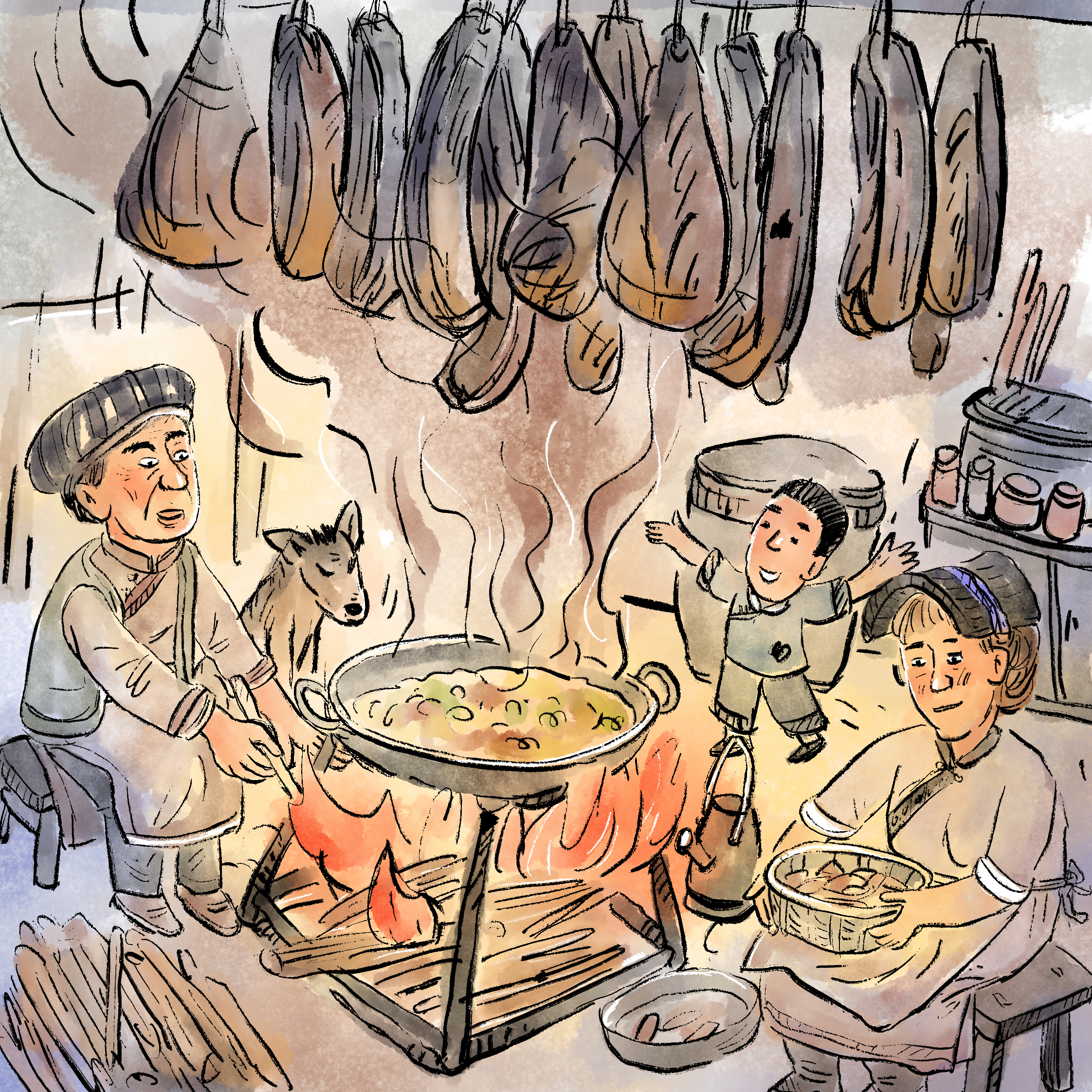 北川老腊肉制作技艺源于羌族人最古老的食品保存技艺,在每年的冬至前后则是宰杀过年猪的时间段。