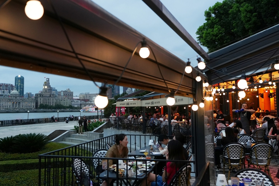 伴随着凉风,浦东滨江段最近也热闹了起来。不少游客选择户外餐位,享受美景美食 新民晚报记者 李铭珅 摄影